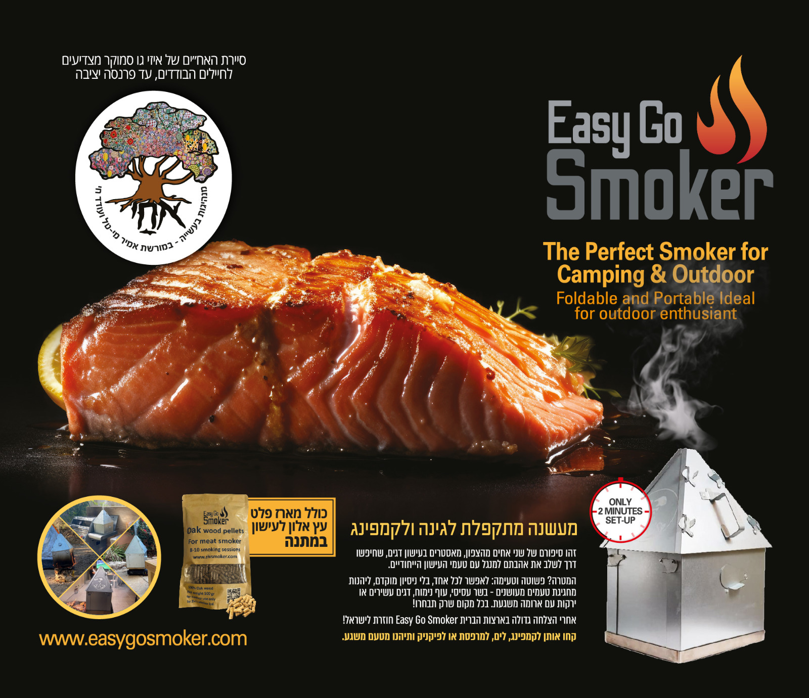 כחיילים, לוחמים ואנשי ביטחון, אתם שם בשביל כולנו, ועכשיו הגיע הזמן שאנחנו נהיה שם בשבילכם. EasyGoSmoker, המעשנה הניידת והמתקדמת בעולם, פטנט ישראלי מקורי- עכשיו בהנחה בלעדית לחברי מועדון "בהצדעה".